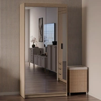 Kleiderschrank Rene 90 cm Eiche geölt stilvolles Design schlichte Form idealer Kleiderschrank mit Spiegel für Schlafzimmer oder Flur ABS bearbeitete Kanten