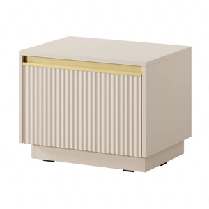 Amma Möbelset beige unkonventionelles Design push to open system verglaste Elemente der Schrankwand geschmackvolle geriffelte Fronten