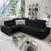 Ecksofa mit Schlaffunktion Dafni II schwarz links geflochtenes Ecksofa mit Bettzeugstauraum Vollauszug in der Seitenwand