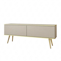 TV-Schrank Luxury 135 cm beige elegantes Design stilvolle geriffelte Front Korpus mit goldenen Zierleisten goldenen Metallbeinen gekrönt