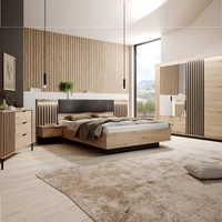 Schlafzimmermöbel-Set Space weiß / Eiche craft gold modernistisches Design Schlafzimmermöbel-Set mit Kleiderschrank LED-Beleuchtung