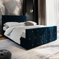 Polsterbett Tifton 140x200 in marineblau mit modernem Stauraum und einem markanten Kopf- und Fußteil mit Kristallen