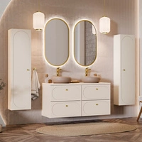 Badmöbel-Set Donna Sand beige elegante Badezimmerschränke mit dekorativen abgerundeten Fräsungen an den Fronten Goldgriffe