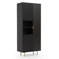 Bücherregal Sula 80 cm schwarz elegantes Design stabil hohe Beine Bücherregal mit Türen für Wohnzimmer geriffelte Front mit push to open System