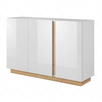 Kommode Adria 138 cm weiß glänzend / Eiche grandson modernes Möbeldesign Kommodenkanten mit speziellem ABS-Furnier bearbeitet