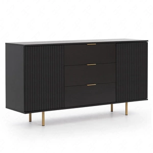 Schubladenkommode Sula 150 cm schwarz elegante und funktionelle Kommode mit dekorativen geriffelten Fronten und Metallgriffen