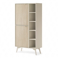 Bücherregal Sula 80 cm beige elegantes Design stabil hohe Beine Bücherregal mit Türen für Wohnzimmer geriffelte Front mit push to open System