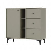 Kommode Wald 106 cm Eukalyptus / beige Fischgrät geschmackvolles Fischgrätdekor auf Fronten geräumige Kommode im skandinavischen Stil