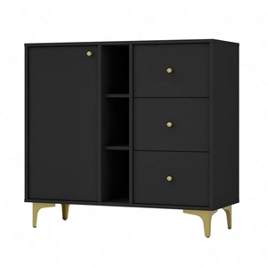 Kommode Kioto III 100 cm schwarz graphit modernes Design Metallrahmen in Gold originelles Design Kommode