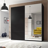 Beta 221 cm Schiebeschrank schwarz geräumiger Kleiderschrank mit Spiegel ist perfekt für Räume jeder Größe