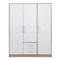 Kleiderschrank Caspe 150 cm hell sonoma Eiche / weiß modernes Design ABS-Finish und Aluminiumgriffe