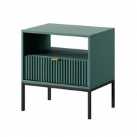 Lovro Nachttisch mit Schublade pastellgrün geschmackvolles geriffeltes Dekor idealer Schlafzimmerschrank Goldrandgriff