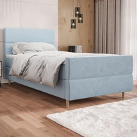 Boxspringbett Benet 90x200 hellblau Bett im modernen skandinavischen Stil mit gepolstertem Kopf- und Fußteil Bett mit Staukasten