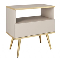 Luxuriöser beigefarbener Nachttisch mit Schublade eleganter Designschrank mit Goldverzierung Schrank auf hohen Metallbeinen gestützt