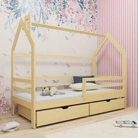 Timon Holzbett 70x140 cm weiß modernes Design Kinderhausbett aus massivem Kiefernholz geräumige Schubladen