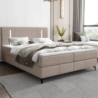 Boxspringbett Norco 160x200 dunkelbeige stilvolles Bett mit Staukasten Beleuchtung im Kopfteil fügt eine einzigartige Note
