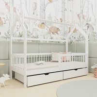 Pumba Holzbett 80x180 cm weiß Kinderbett aus massivem Kiefernholz Kinderhausbett mit geräumigen Schubladen