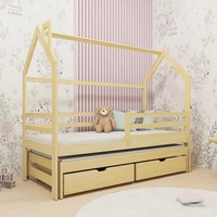 Kinderbett Chip 80x200 cm Kiefer Ausziehbares Doppelbett für das Kinderzimmer Holzbett in Form eines Hauses mit geräumigen Schubladen