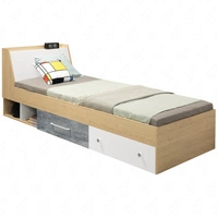 Bett Paguro 90x200 cm Eukalyptus mit Lagerung ideal für ein Kinderzimmer mit gepolstertes Kopfteil