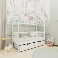 Timon Holzbett 90x200 cm weiß modernes Design Kinderhausbett aus massivem Kiefernholz geräumige Schubladen