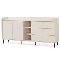Kommode Ferdi 154 cm sandbeige elegante Kommode für das Wohnzimmer mit goldenen Metallgriffen hohe Ränder der Oberseite