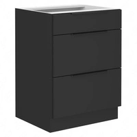 Stehender Küchenschrank mit Schubladen Schwarz 60 D 3S BB Metallkante Griffe Feuchtigkeit und Beschädigung beständig Schrank
