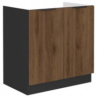 Küchenschrank unter Spüle Schwarz 80 ZL 2F BB Metallrand Griffe Feuchtigkeit und Beschädigung beständig Schrank
