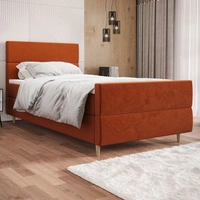 Boxspringbett Benet 100x200 ziegelrotes im modernen skandinavischen Stil mit gepolstertem Kopf- und Fußteil, Bett mit Staukasten