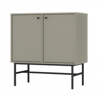Bücherregal Wald 80 cm Eukalyptus / Beige Fischgrät skandinavisches Design stabil hohe Beine Bücherregal mit Türen für Wohnzimmer geschmackvolles Fischgrätenmuster