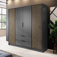 Schrank Aspen 206 cm Grafit / Eiche Artisan Lamellen modernes Design Schranktüren mit dekorativen Lamellen