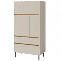 Regal Paguro 80 cm beige sand / Eiche geölt elegantes Design stabile hohe Beine Bücherregal mit Türen und Schubladen