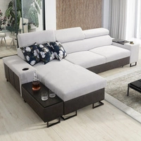 Ecksofa mit Schlaffunktion Castel II blau links bequemes Ecksofa mit verstellbaren Kopfstützen Bettzeugcontainer