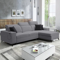 Ecksofa mit Schlaffunktion Elgin grau rechtes Ecksofa mit verstellbaren Kopfstützen praktische Schubladen in den Seiten des Möbels