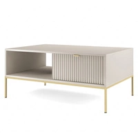 Couchtisch Lovro beige mit Schubladen modernes Design auslaufsichere Platte goldene Metallbeine