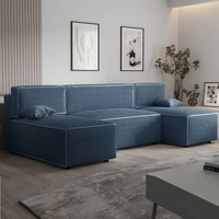 Ecksofa mit Schlaffunktion Brandon U blauer Bettzeugcontainer dreidimensionaler Stoff mit ausdrucksvollen Streifen
