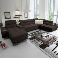 Ecksofa mit Schlaffunktion Bresso braun/weiß rechte Seite stilvolles Ecksofa mit praktischer Ablage in schwarz verstellbare Kopfstützen