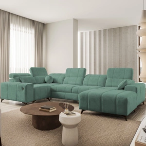 Ecksofa mit Schlaffunktion Penejos IV grün rechtsseitig stilvolles Ecksofa mit zwei Bettkästen strapazierfähiger Stoff