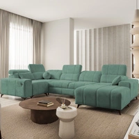 Ecksofa mit Schlaffunktion Fogu U grün komfortables und stilvolles Ecksofa mit einfachem Design Kordstoff Bettzeug Container