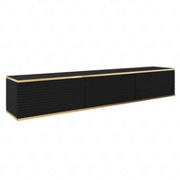 TV-Lowboard Luxury 175 cm Schwarz Begeistert Liebhaber eleganter Arrangements stilvolle geriffelte Front Korpus verziert mit einer goldenen Leiste