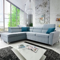 Ecksofa mit Schlaffunktion Rava III blaues Linkshändersamt komfortables Ecksofa mit verstellbaren Kopfstützen und Bettzeugcontainer