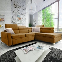 Ecksofa mit Schlaffunktion Rava gelb rechts Samt komfortables und funktionelles Ecksofa mit verstellbaren Kopfstützen