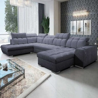 Ecksofa mit Schlaffunktion Fiesta U XL dunkelgrau Ecksofa für Wohnzimmer mit Bettzeug Stauraum Stoff mit Plüschoberfläche
