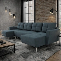 Ecksofa mit Schlaffunktion Fiesta U dunkelblau stilvolles Ecksofa mit interessanter Form strapazierfähiger Plüschstoff Bettkasten