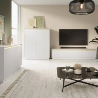 Imperial weißes Möbelset stilvolle Schrankwand mit gefrästen Fronten und eleganten gebürsteten Goldgriffen