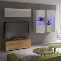 Möbelset Apulia XXI weiß / goldene Eiche eine außergewöhnlich stilvolle Wohnwand einfache Elemente, die in jedes Interieur passen