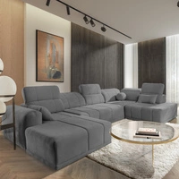 Ecksofa mit Schlaffunktion Castel II grau Esche rechts komfortables Ecksofa mit verstellbaren Kopfstützen Container für Bettzeug