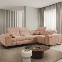 Ecksofa mit Schlaffunktion Nausa III hellbraun linksseitig Samt stilvolles bequemes Ecksofa verstellbare Kopfstützen Container für Bettzeug