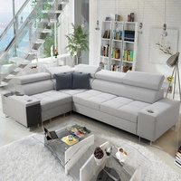 Ecksofa mit Schlaffunktion Castel II beige links komfortables Ecksofa mit verstellbaren Kopfstützen Container für Bettzeug