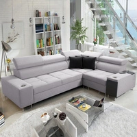 Ecksofa mit Schlaffunktion Dafni II grau Esche rechtwinklig geflochtenes Ecksofa mit Bettzeugschublade in der Seite des Möbels