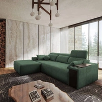 Ecksofa mit Schlaffunktion Tesalia IX grün links modernes Design komfortable Schiebelehne Schublade in der Seite des Möbels
